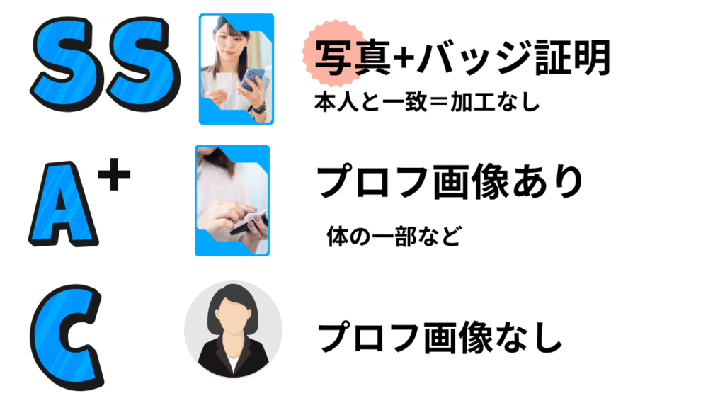 その点シュガダは独自のシステムで写真登録済で尚且つ本人と一致している子にバッジをつけるシステムがある。だから予想事情にかわい子と合えたという声が多い。